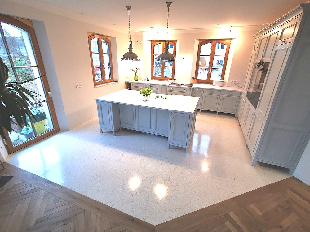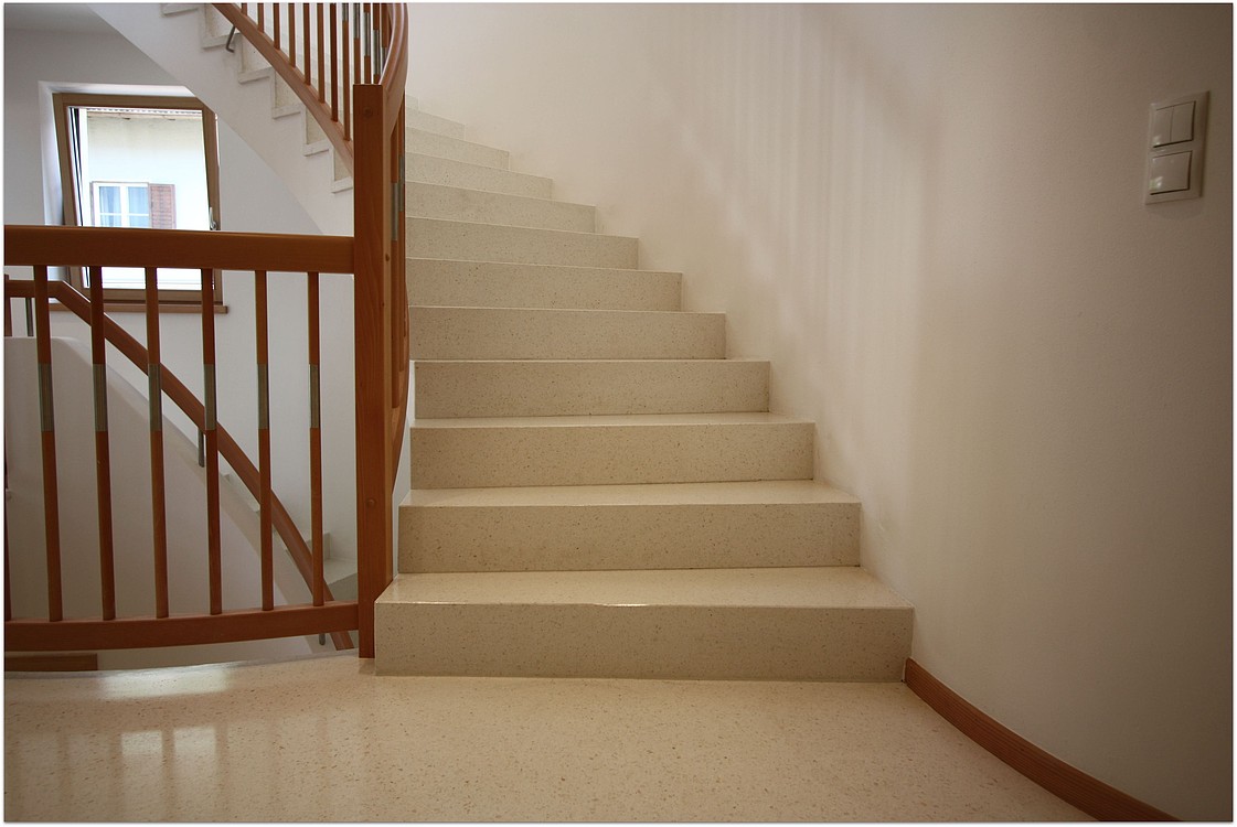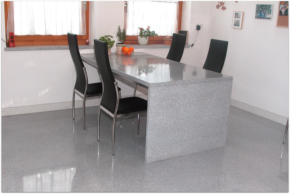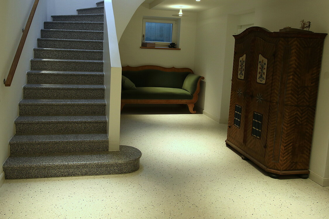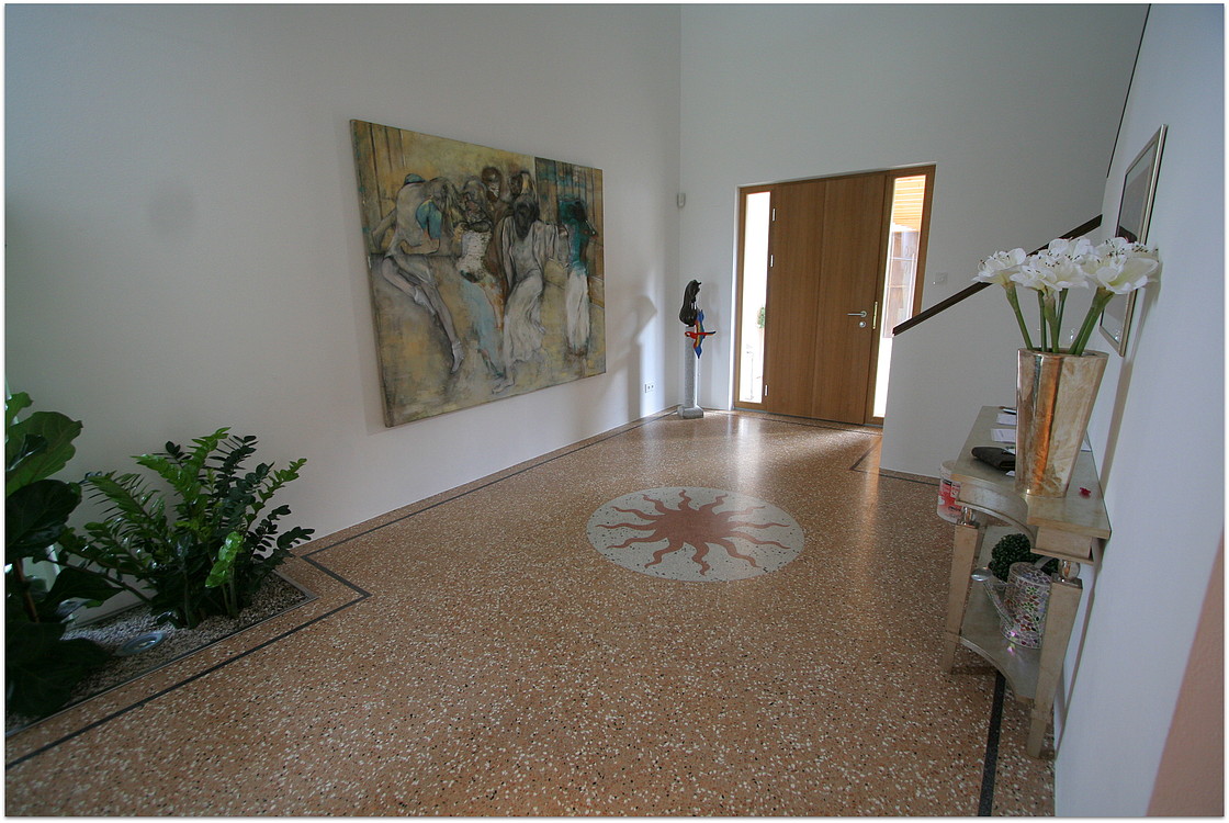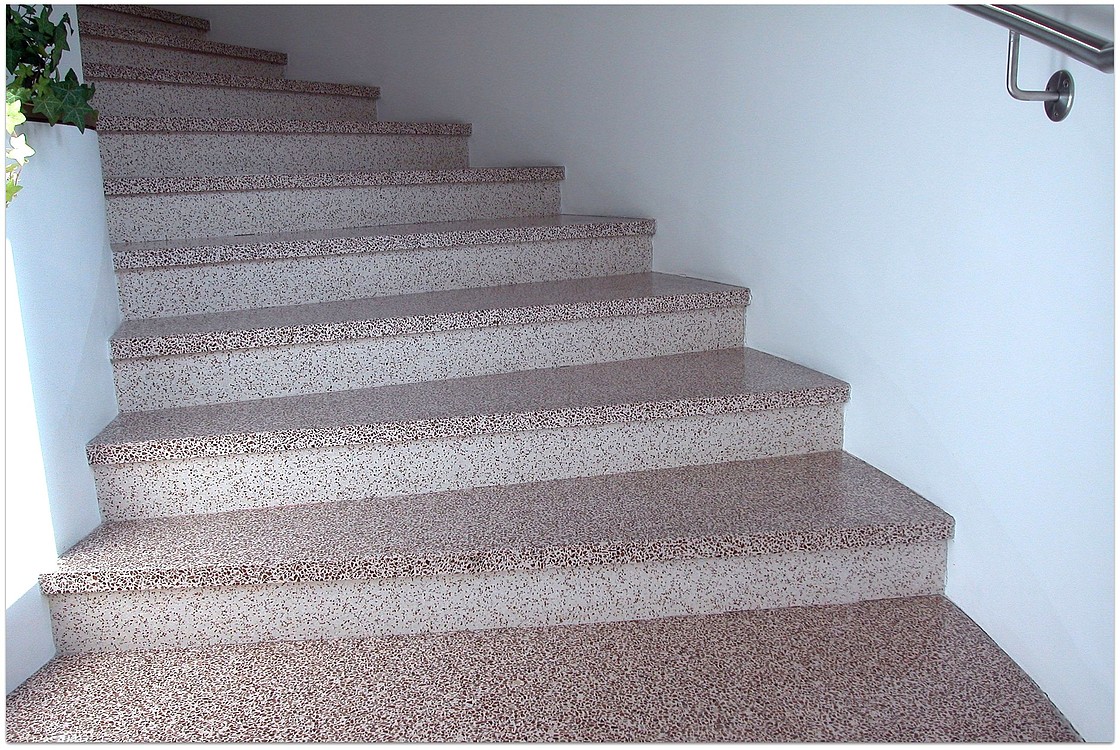 Grundsätzlich werden unsere Terrazzoböden aus baubiologischen Gründen nicht auf Kunstharzbasis hergestellt. Bindemittel und Granulate bestehen aus rein natürlichen Produkten.