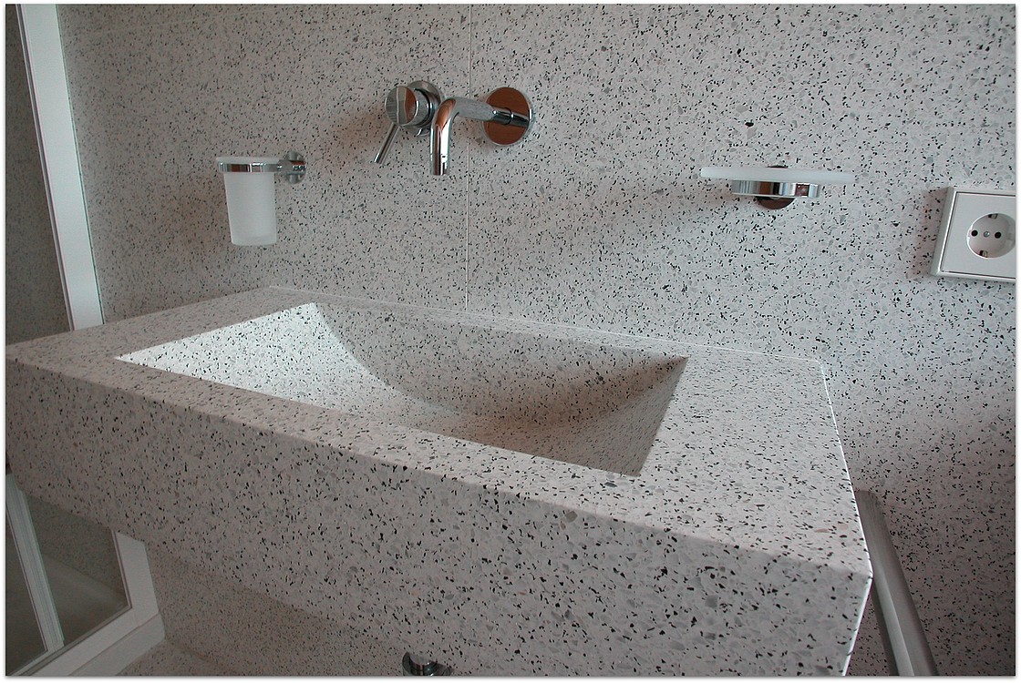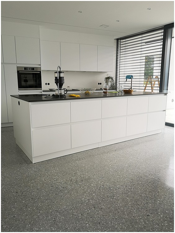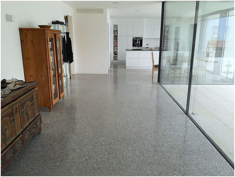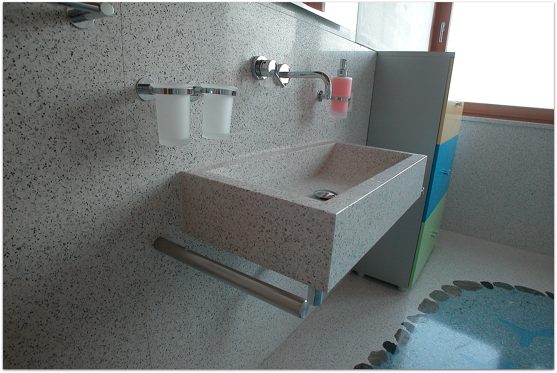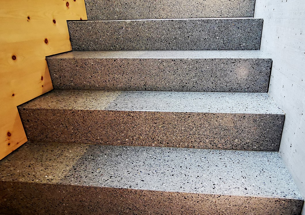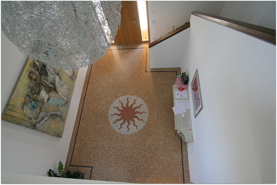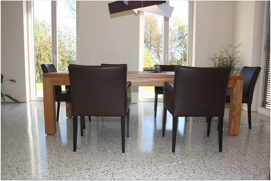 Grundsätzlich werden unsere Terrazzoböden aus baubiologischen Gründen nicht auf Kunstharzbasis hergestellt. Bindemittel und Granulate bestehen aus rein natürlichen Produkten.
