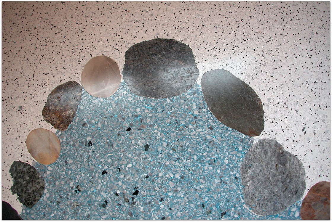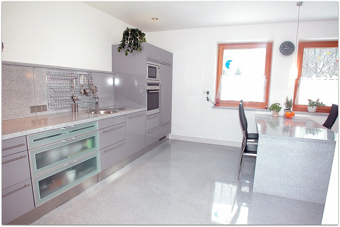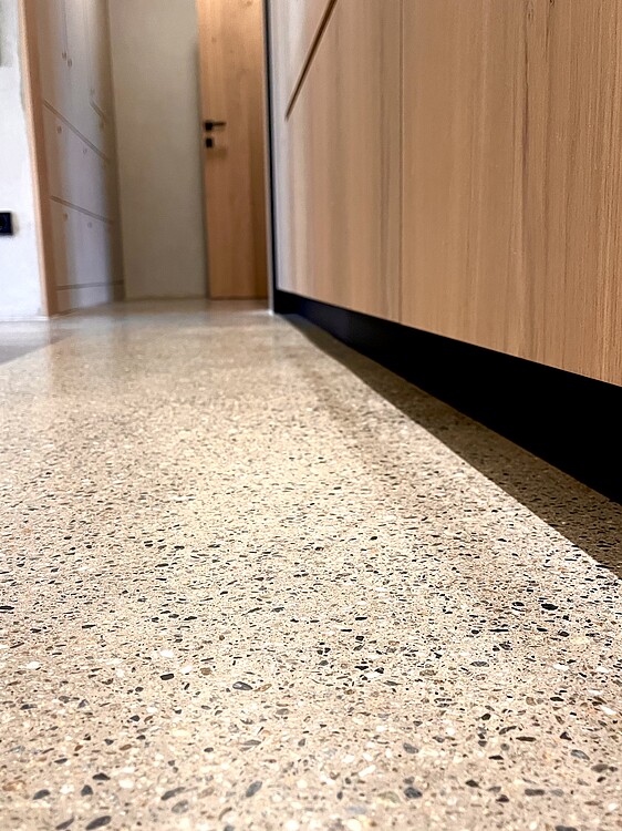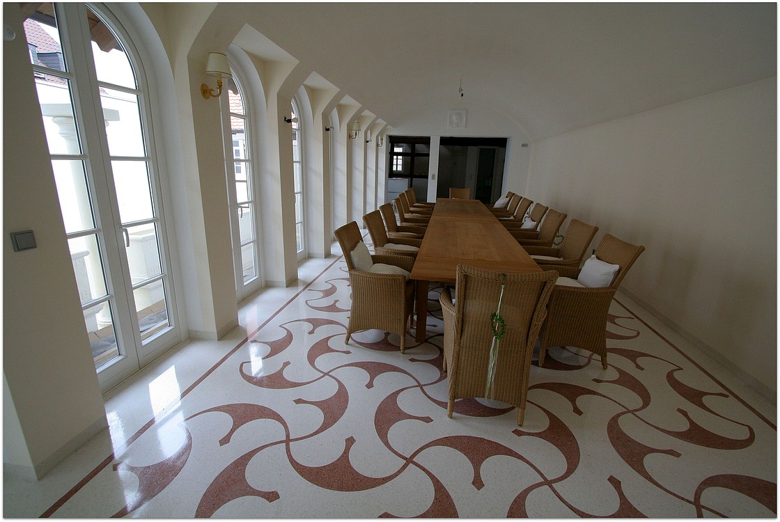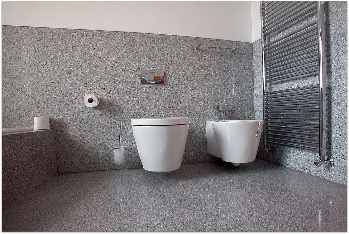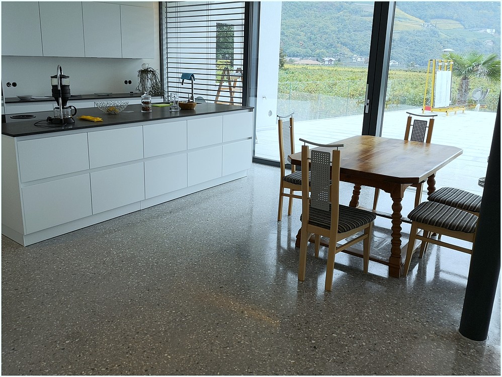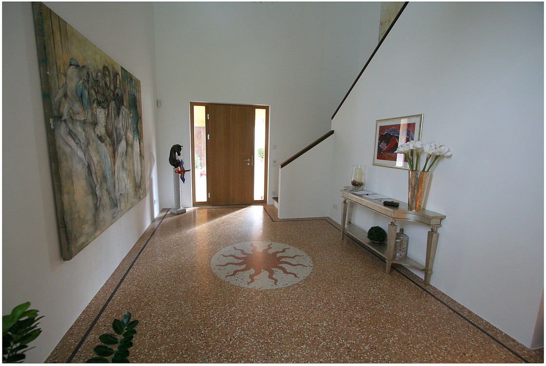 Grundsätzlich werden unsere Terrazzoböden aus baubiologischen Gründen nicht auf Kunstharzbasis hergestellt. Bindemittel und Granulate bestehen aus rein natürlichen Produkten.