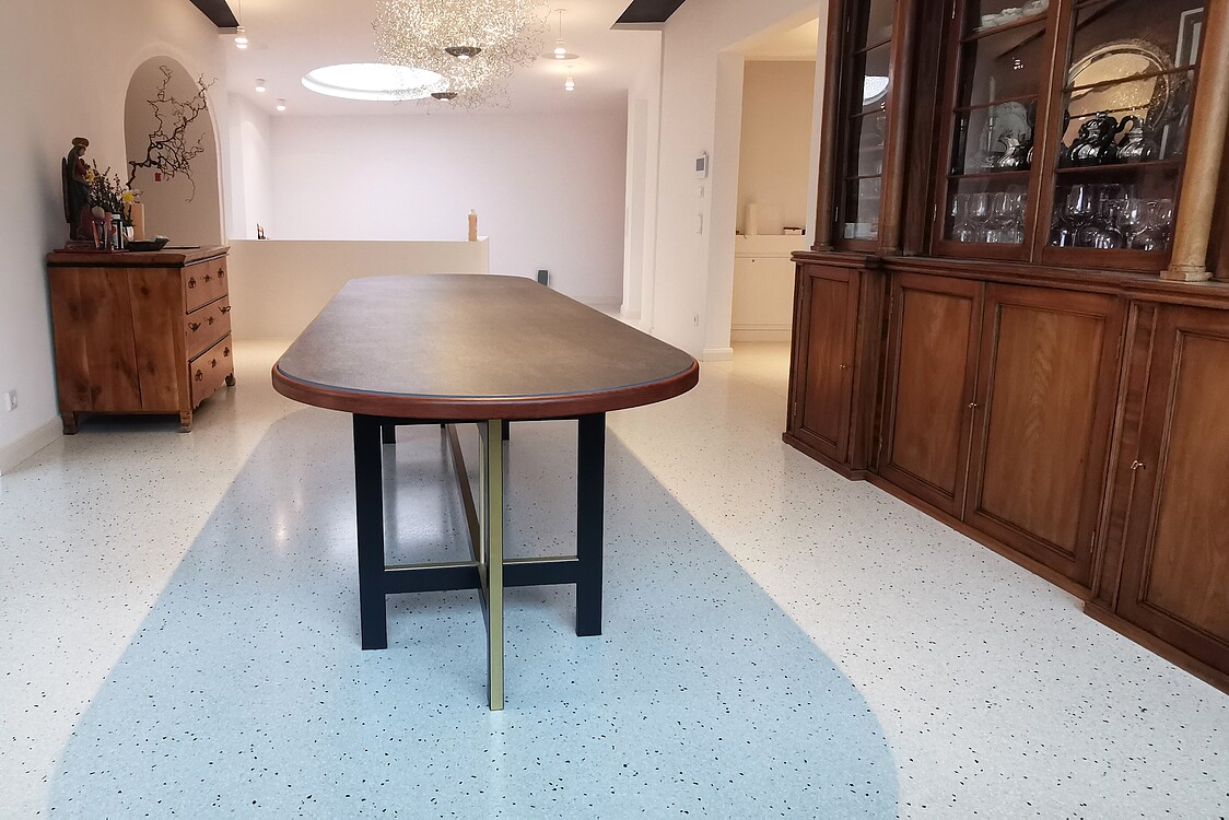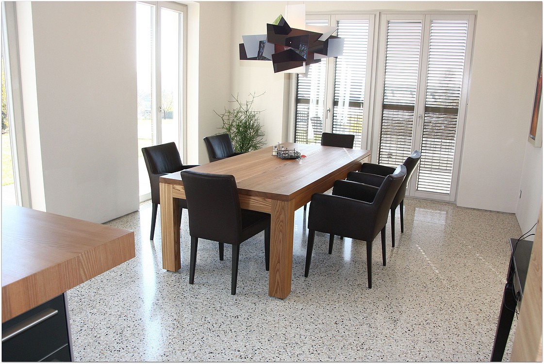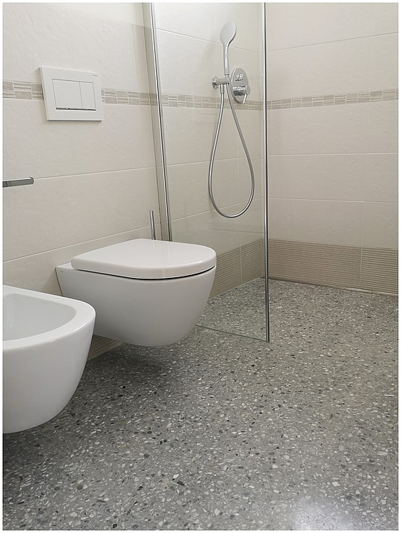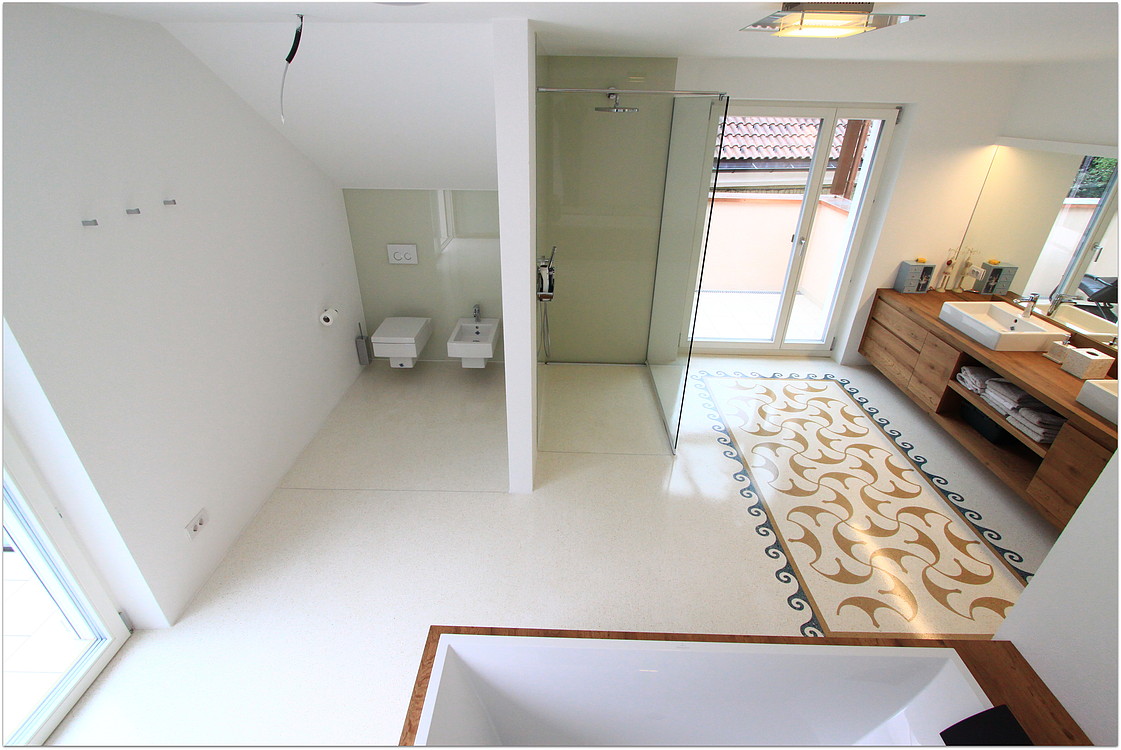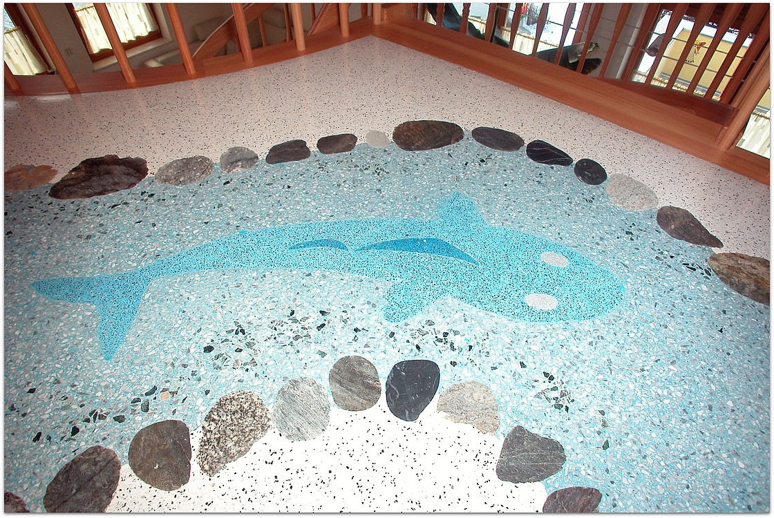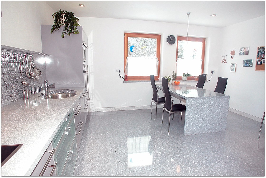 Grundsätzlich werden unsere Terrazzoböden aus baubiologischen Gründen nicht auf Kunstharzbasis hergestellt. Bindemittel und Granulate bestehen aus rein natürlichen Produkten.