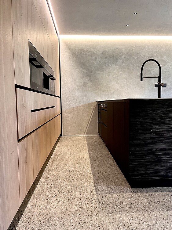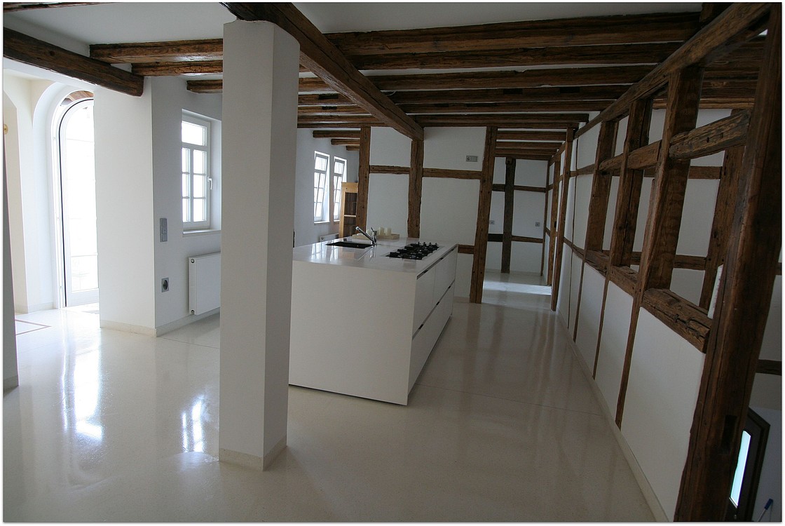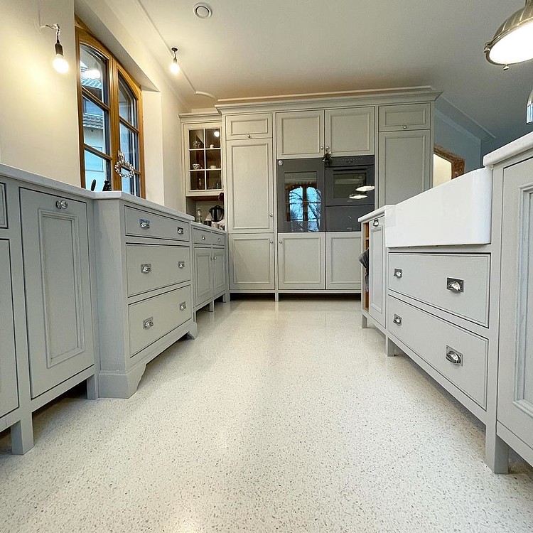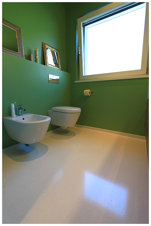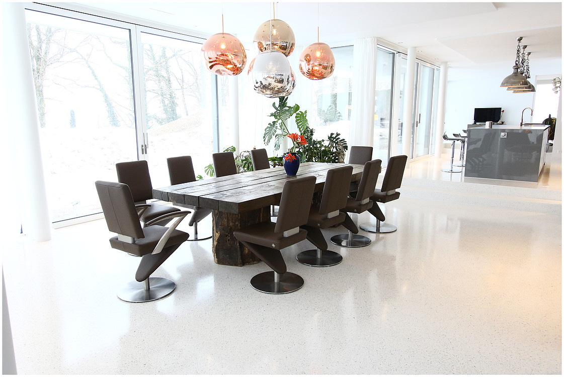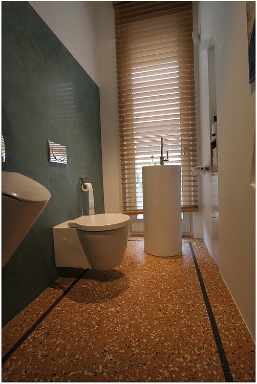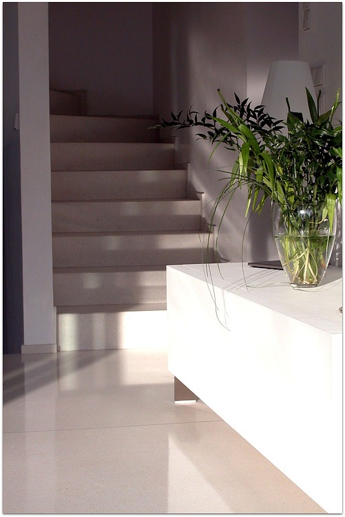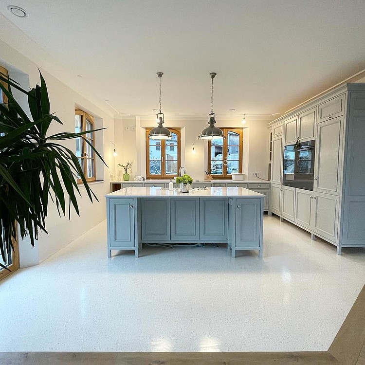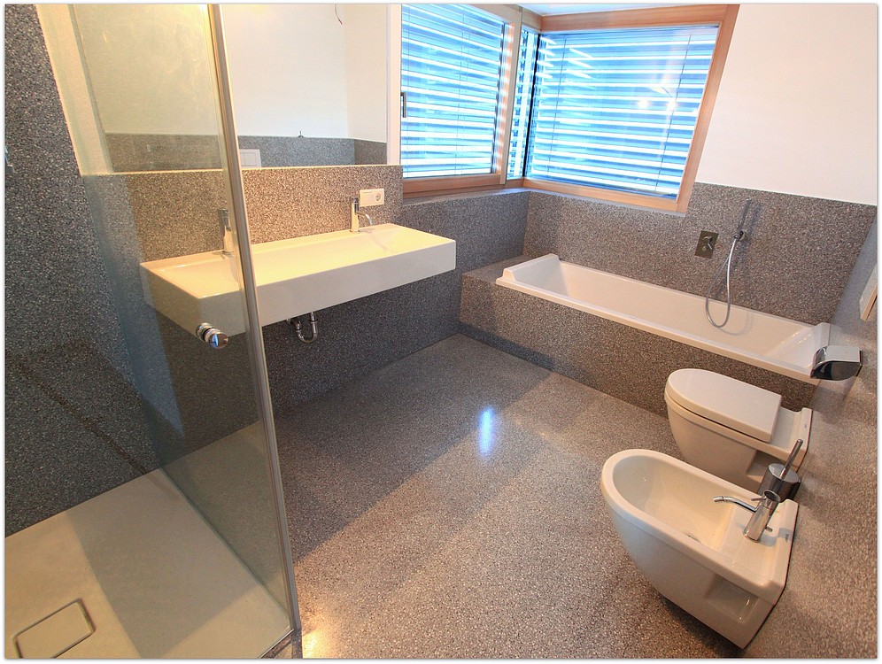 Grundsätzlich werden unsere Terrazzoböden aus baubiologischen Gründen nicht auf Kunstharzbasis hergestellt. Bindemittel und Granulate bestehen aus rein natürlichen Produkten.