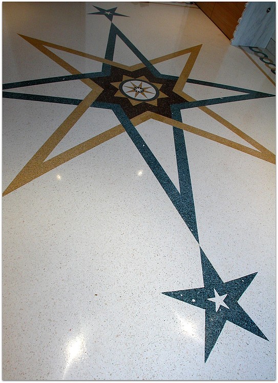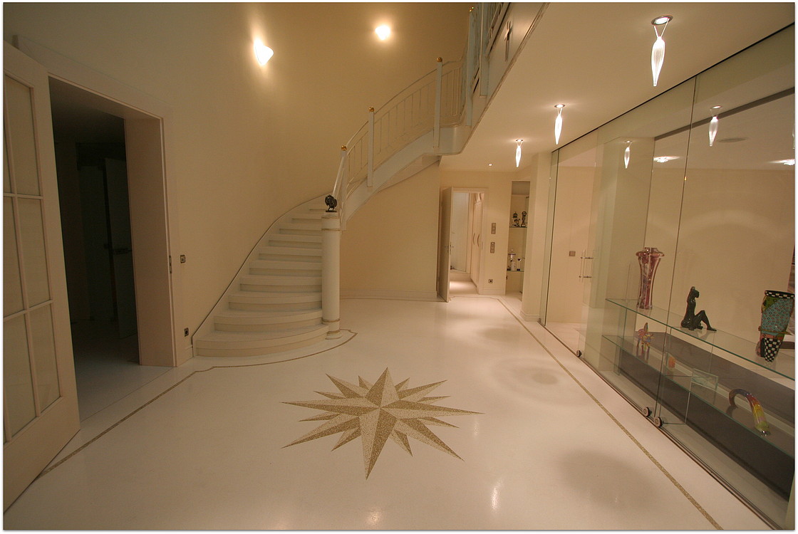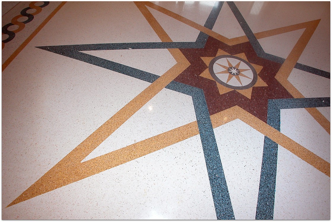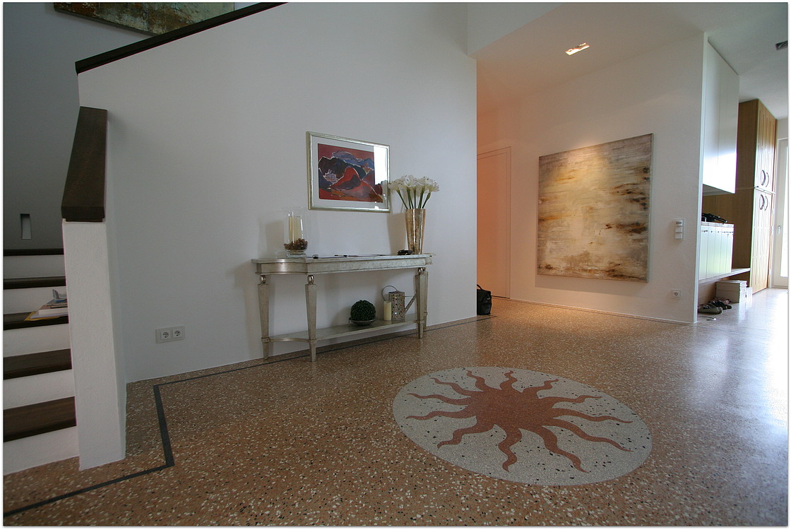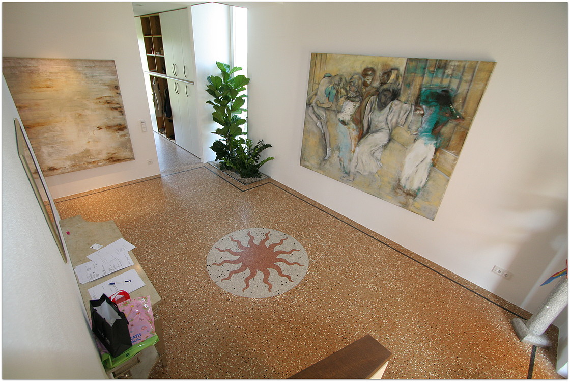 Die unten dargestellten Terrazzoböden wurden von unserem Betrieb verlegt. Teilweise wurden sie von Architekten und teilweise von uns entworfen.