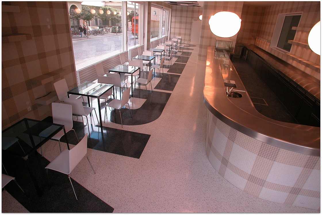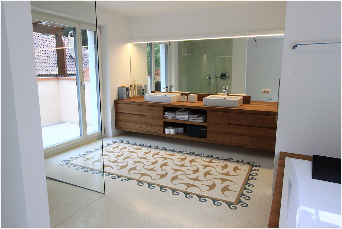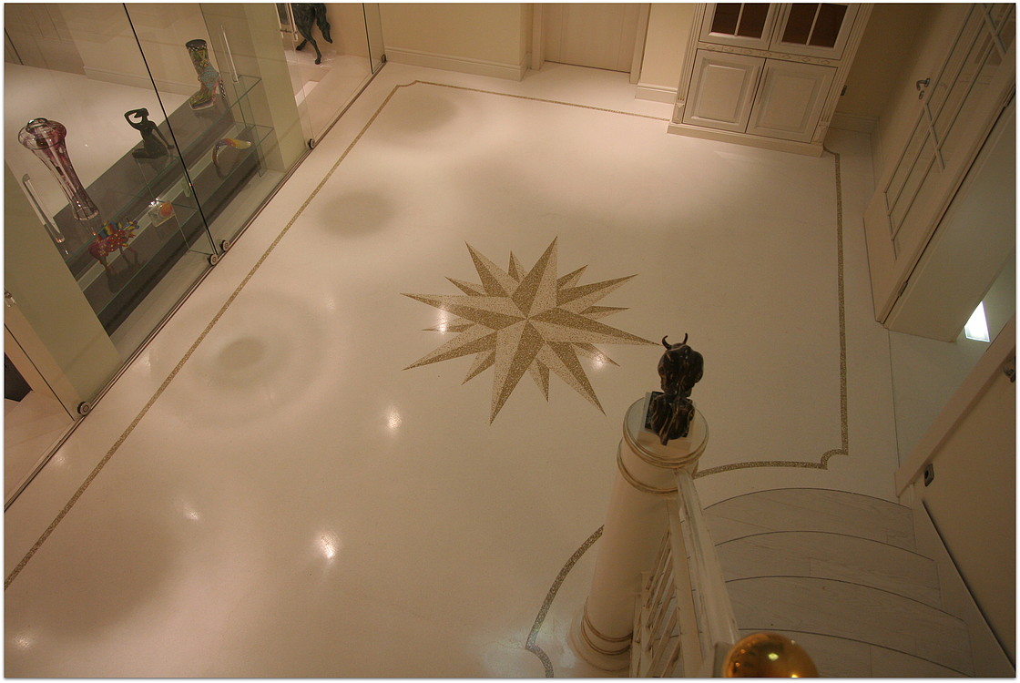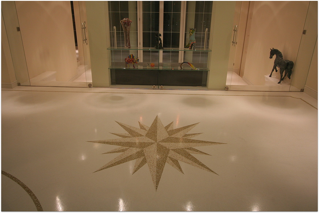 Die unten dargestellten Terrazzoböden wurden von unserem Betrieb verlegt. Teilweise wurden sie von Architekten und teilweise von uns entworfen.