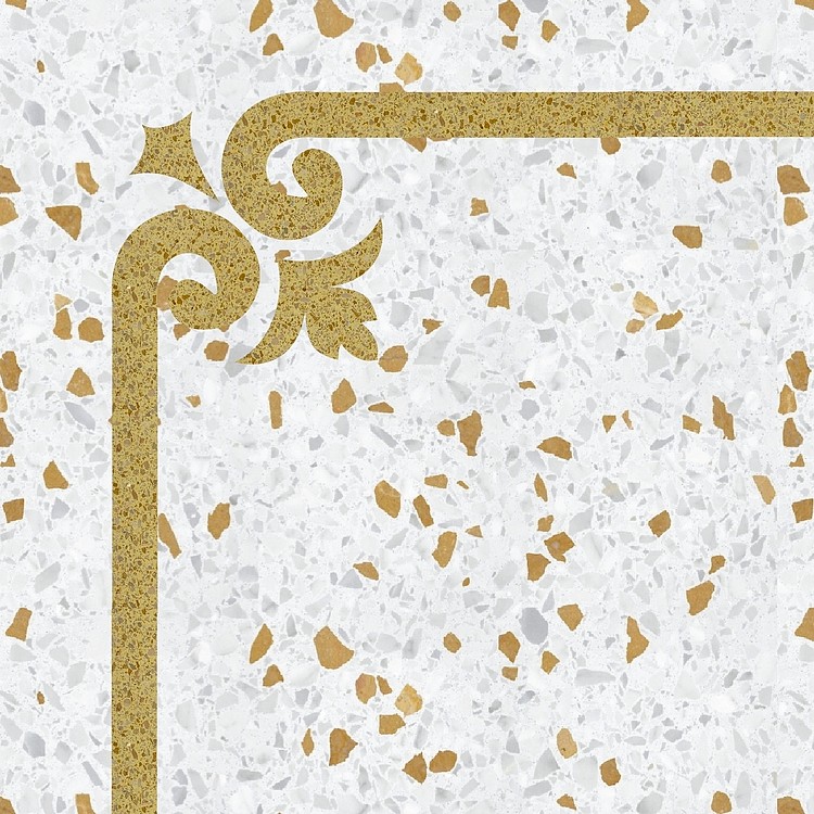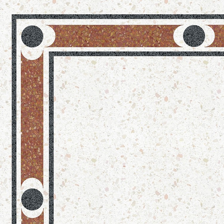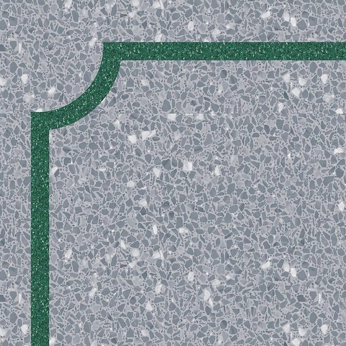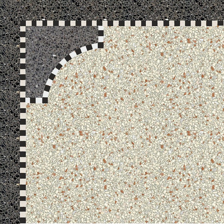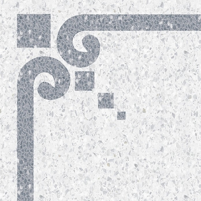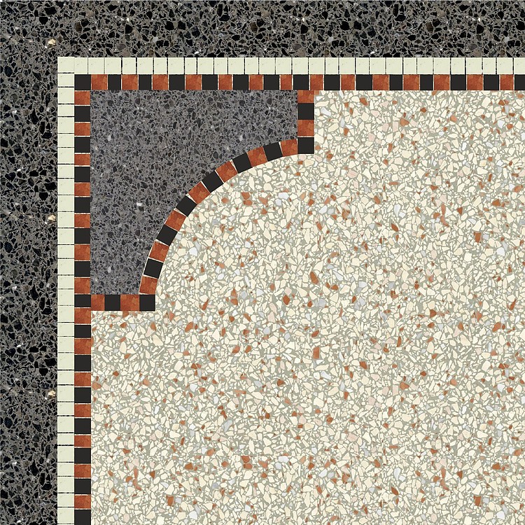 Die hier dargestellten Eckmuster sind keine Standartmuster, sondern dienen lediglich der leichteren Auswahl zum Entwurf eines Terrazzobodens. Grundsätzlich wird jeder von uns verlegte Terrazzoboden individuell im Grundton, Granulatfarbe, -größe und Bindemittel hergestellt. Der Fantasie sind keinerlei Grenzen gesetzt.