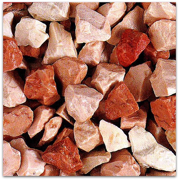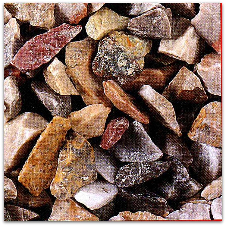 Wir verwenden hauptsächlich die hier dargestellten Typen von Marmorgranulate und Körnungen.